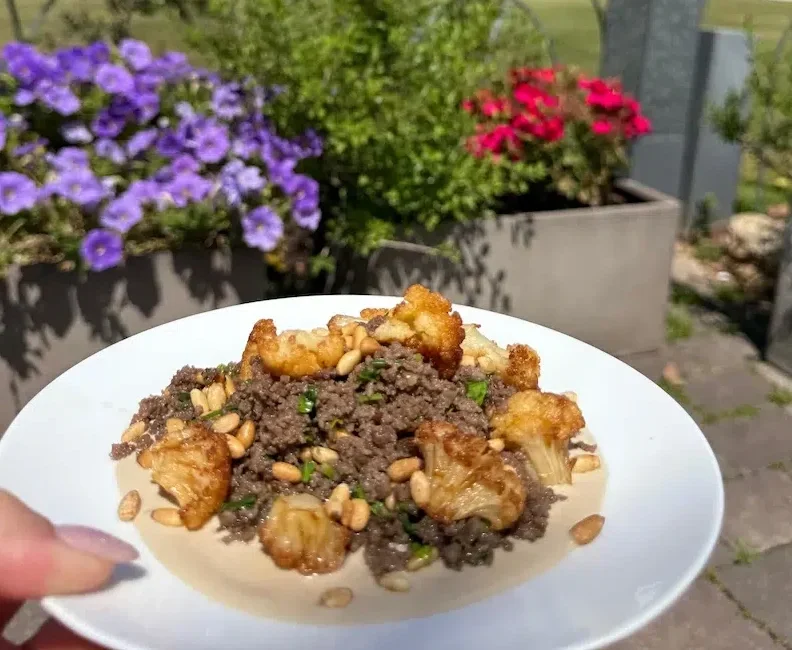 🌸 בראנץ' חגיגי: בשר ופרחי כרובית על קרם טחינה "הר ברכה"
